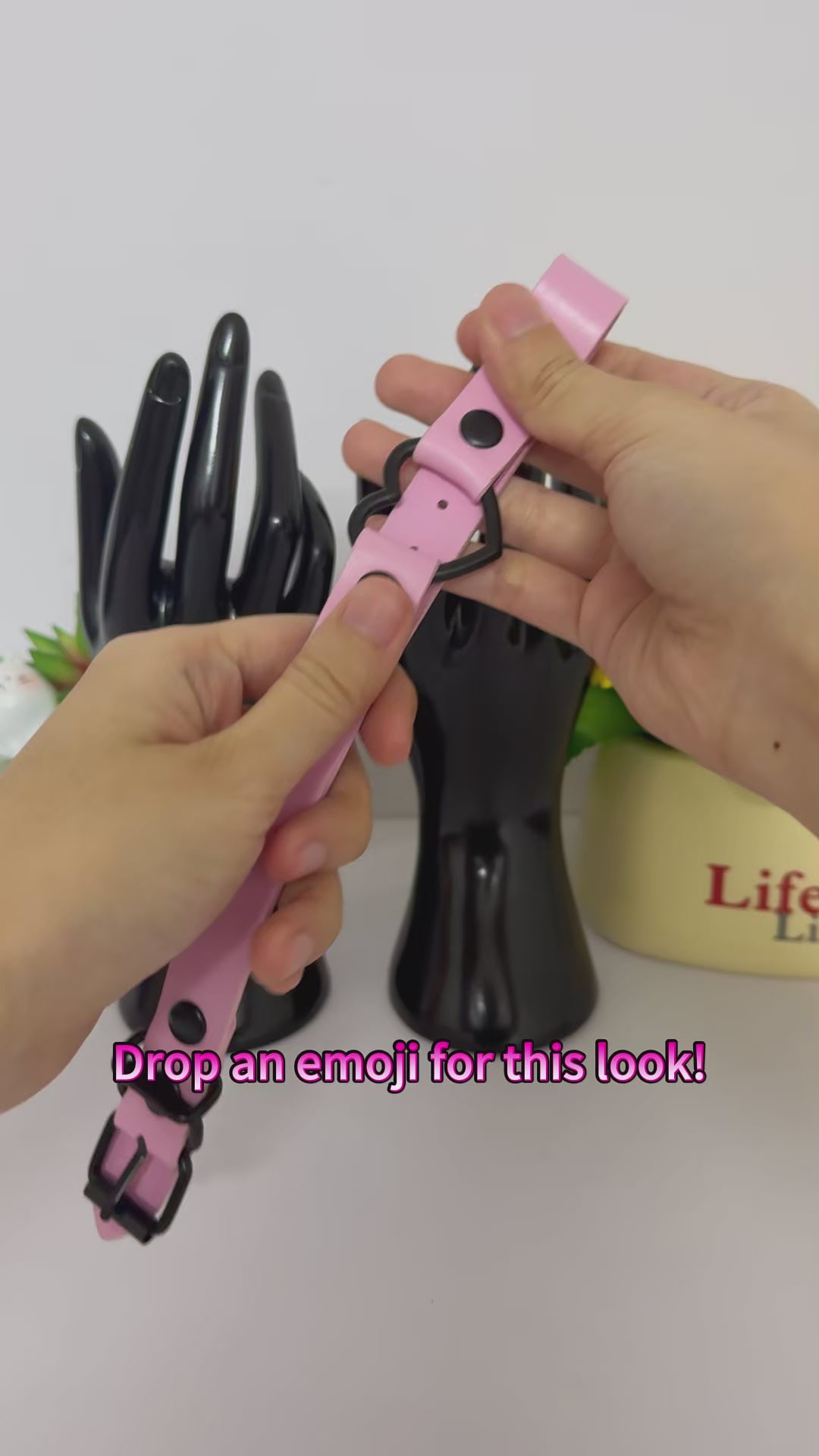 Luxe Chain( 3 in 1 Convertible Leather Bracelet, Handcuffs & Choker Necklace) ( Pink Leather with Heart)