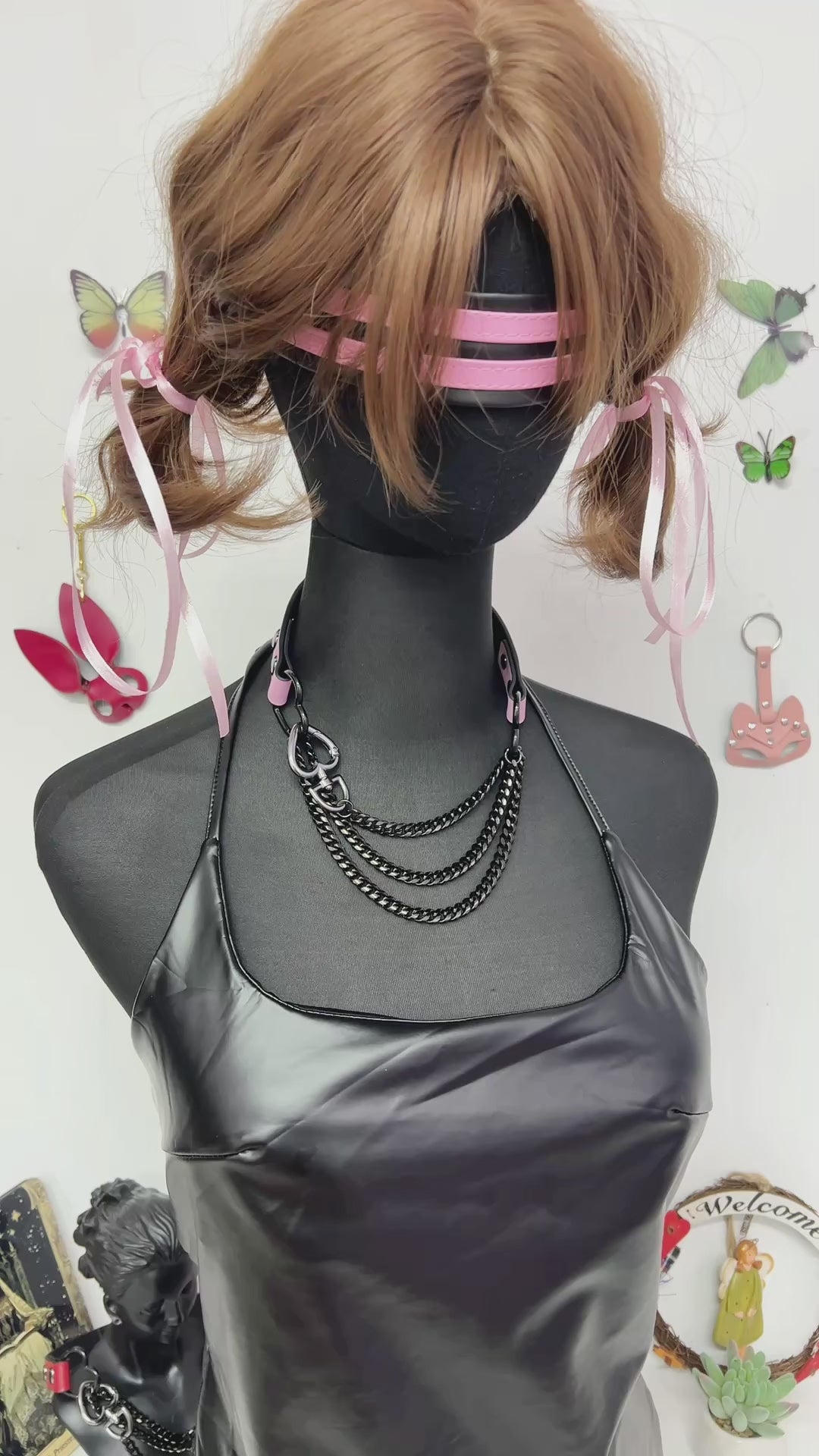 “Enigma” is a daring and avant-garde collar crafted from a premium blend of imported first-layer cowhide, lambskin, and metal chains. This exquisite piece is more than an accessory—it’s a statement, a journey into bold and fascinating fashion. Named “Enigma” to evoke a sense of mystery and allure, this collar embodies sophistication and intrigue.