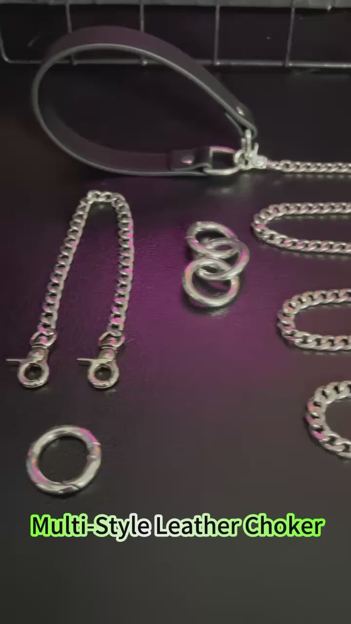 Luxe Chain (Versatile Leather Choker with Rings)( Pink Leather Black Chain)